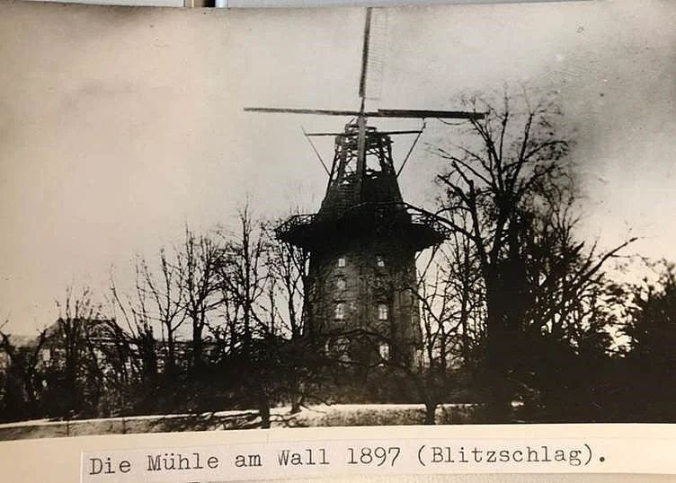 Die Stadtgemeinde Bremen hatte somit die Möglichkeit, die Mühle um 1891 zu erwerben. Schon wenig später, fing die Mühle in einem Frühjahrsturm Feuer und erlitt zwar deutlichen Schaden (siehe nachfolgendes Bild), brannte jedoch zum Glück nicht vollständig ab.