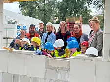 Bremen, 25.9.2024 | Am heutigen Mittwoch wurde in Arbergen gemeinsam mit einigen Kita-Kindern im Beisein der Senatorin für Kinder und Bildung, Vertreterinnen und Vertretern von Immobilien Bremen, KiTa Bremen, des Bauunternehmens sowie dem Architekturbüro, die Grundsteinlegung des Kinder- und Familienzentrums (KuFZ) Arbergen gefeiert.