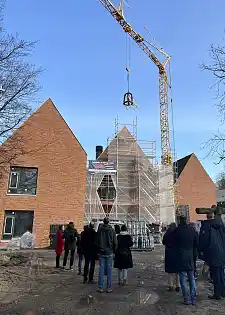 Am 2. Februar fand man sich daher vor Ort mit einigen Schüler:innen, Teilen des Kollegiums, der Bildungssenatorin, Mitarbeiter:innen von Immobilien Bremen und dem Architekten ein, um den Handwerkern traditionell mit einem Richtfest zu danken.