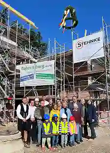 Bis zu 120 Kinder kann das neue Kinder- und Familienzentrum Lesum, unter Trägerschaft des städtischen Eigenbetriebs KiTa Bremen, künftig beherbergen. Das zweistöckige Gebäude mit Passivhausstandard bietet auf einer Bruttogrundfläche von 1.540 Quadratmetern Platz für sechs Gruppen inklusive entsprechender Differenzierungsräume sowie für eine neue Produktionsküche, in der die Mahlzeiten für die Kinder täglich frisch zubereitet werden. Läuft alles glatt, kann der neun Millionen Euro teure Neubau Am Heidbergstift im Spätsommer 2025 bezogen werden. Heute (13. September 2024) hat Finanzsenator Björn Fecker zusammen mit Kita-Leiterin Jessica Langenberg sowie den beteiligten Akteuren von Immobilien Bremen, Architekturbüro und dem ausführenden Bauunternehmen FA. Stehnke das Richtfest gefeiert.